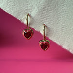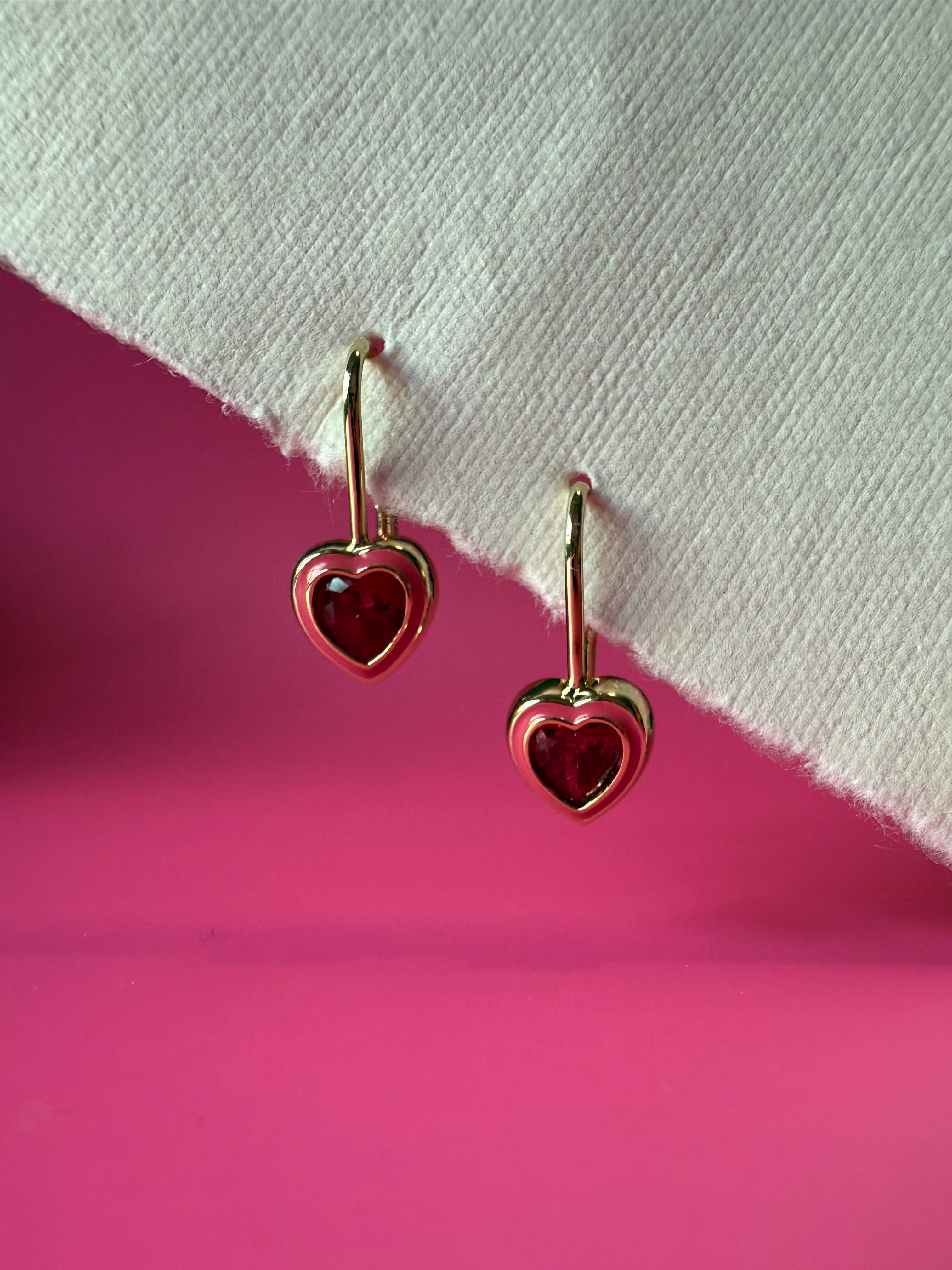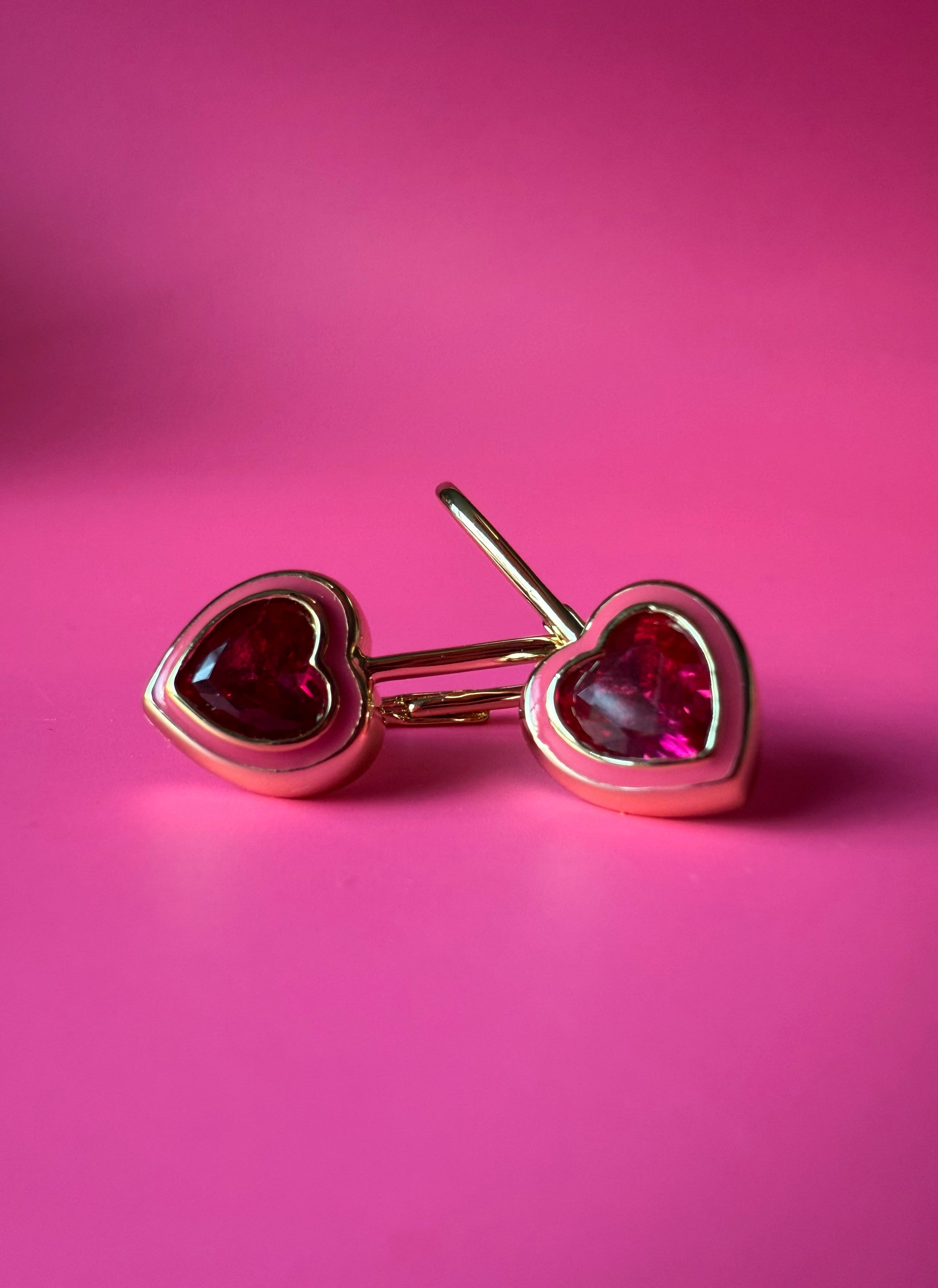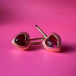 Pink Ruby Heart Earrings- 14K Gold Filled
